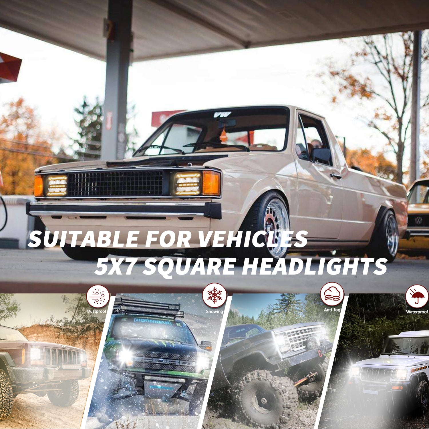 - 【Fitment】: TopAutoGear 5x7 Led Headlights fit any vechicles with 5x7 inch ( also known as 7x6 ) Square Headlights, Super cool upgrade for 86-95 Jeep Wrangler yj, 79-01 Cherokee XJ, Ford E-series F-series, C4 Corvette, GMC Savana, Dodge w250 etc (Tips: pls consult us if you not sure whether it fit or not),a few old Japan brand cars need extra relay kit