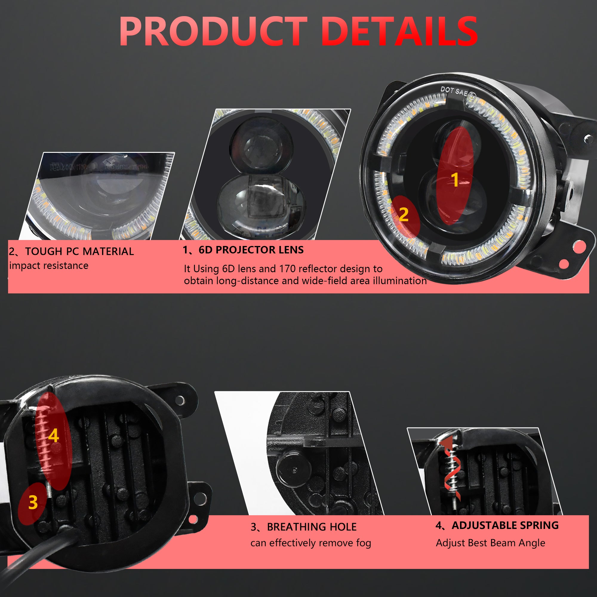 - 【PACKAGE INCLUDED】2Pcs × 4 Inch LED fog lights for JK JKU, TopAutoGear's quality guarantees.