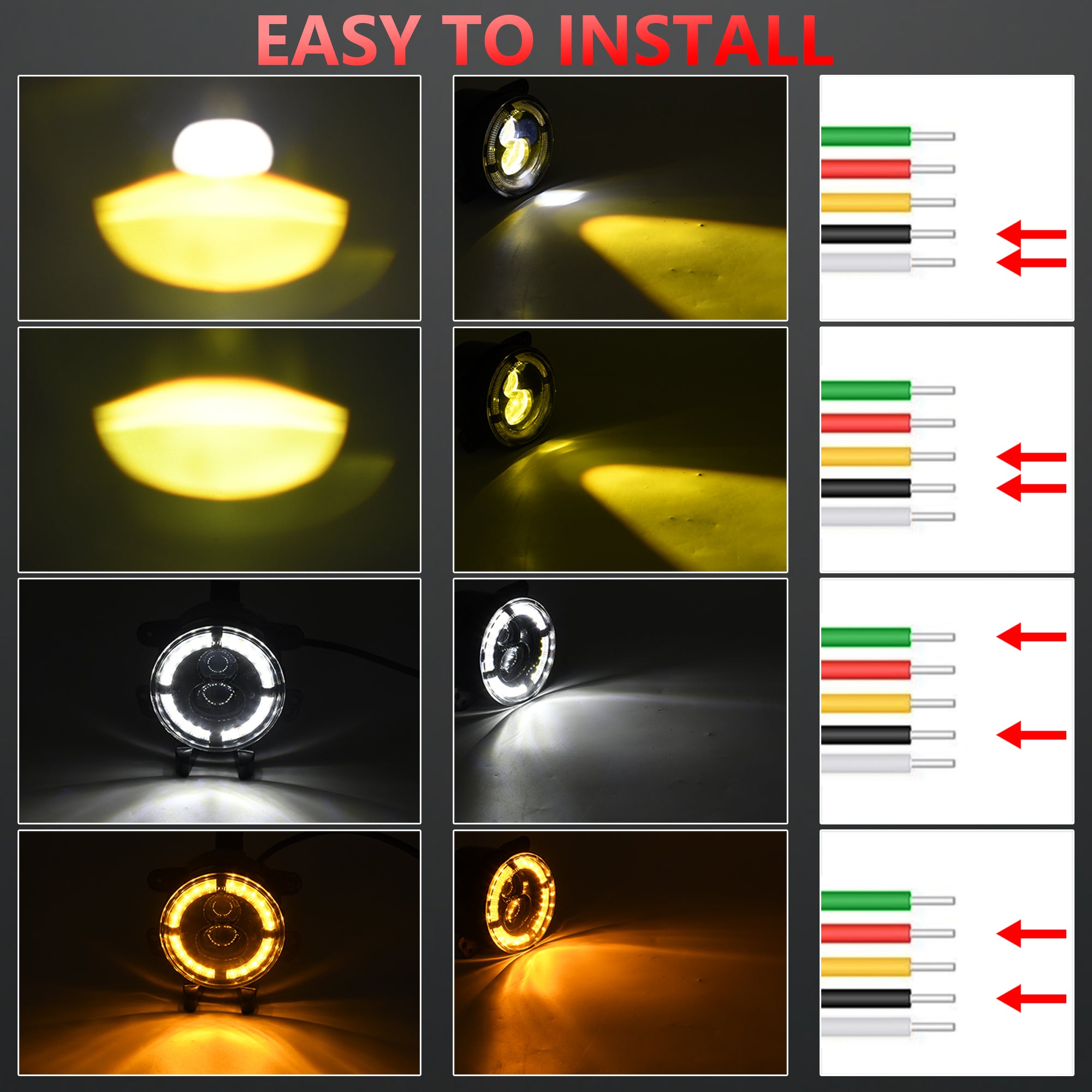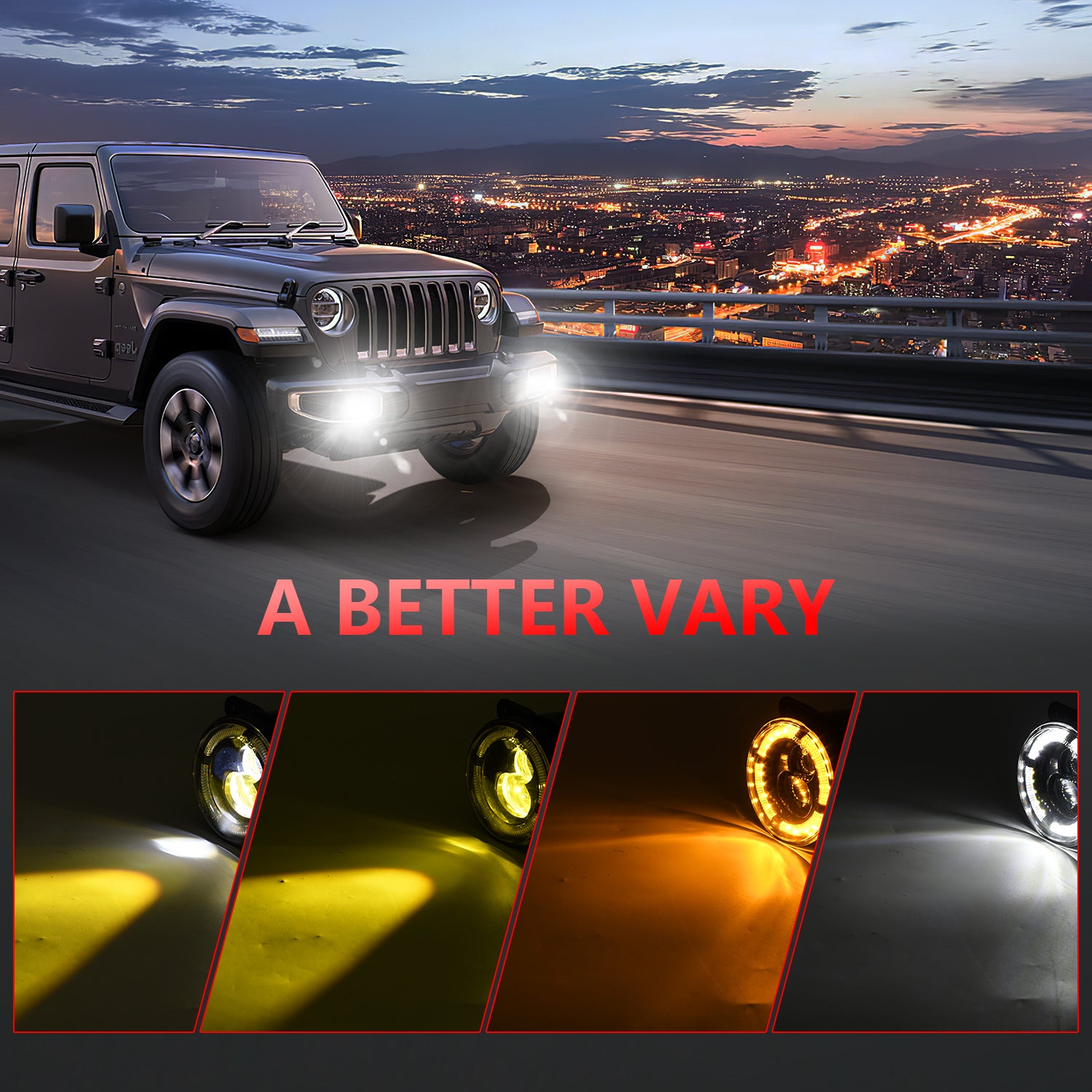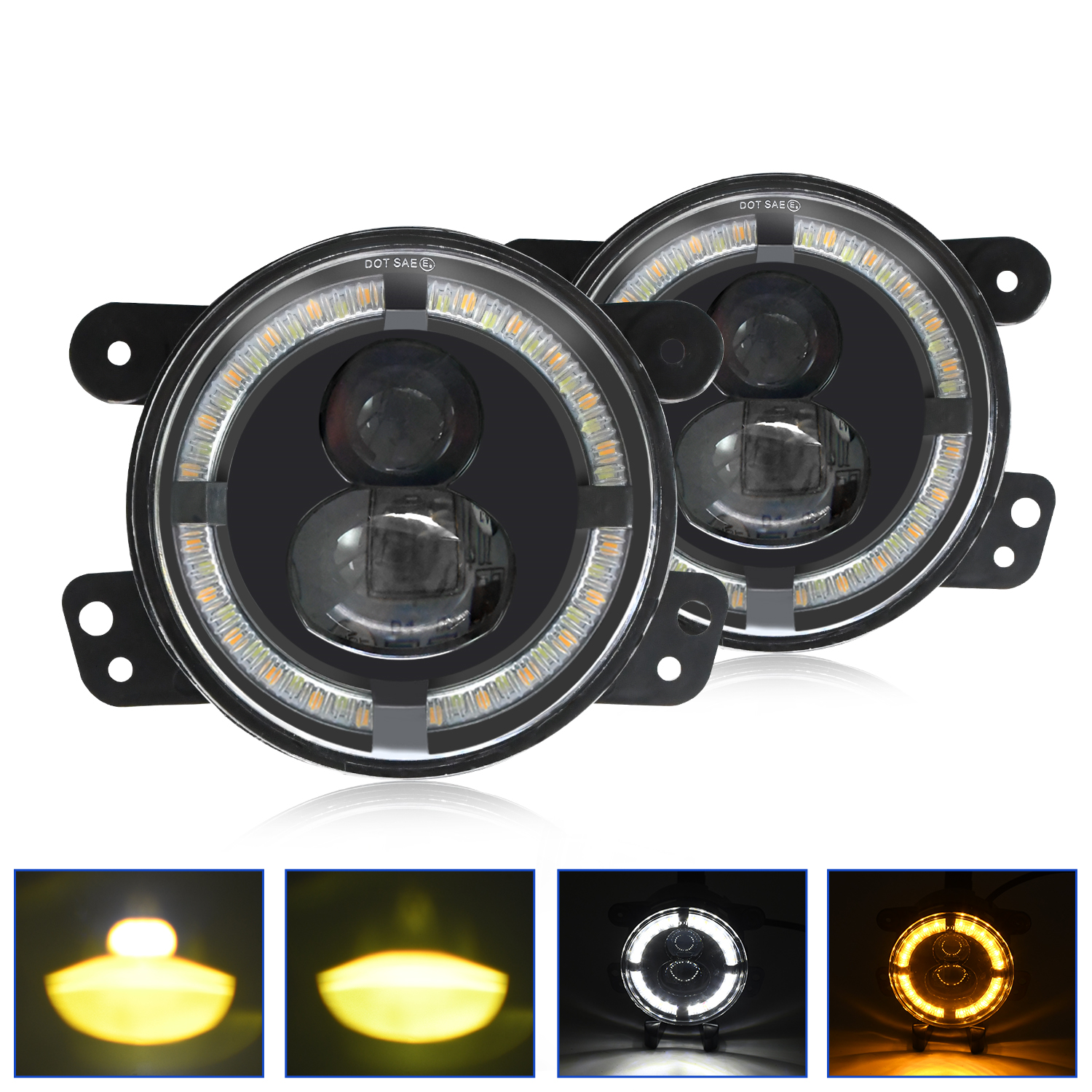 - 【FITMENT】TopAutoGear 4" LED fog lights for Jeep Wrangler JK Rubicon Unlimited JKU 2007 2008 2009 2010 2011 2012 2013 2014 2015 2016 2017 2018, driving offroad 4" round Dual-color fog lights (White & Amber) w/ DRL & Amber turn signal lights.