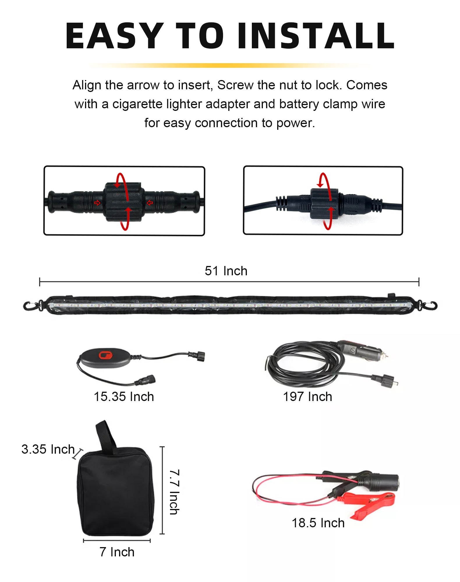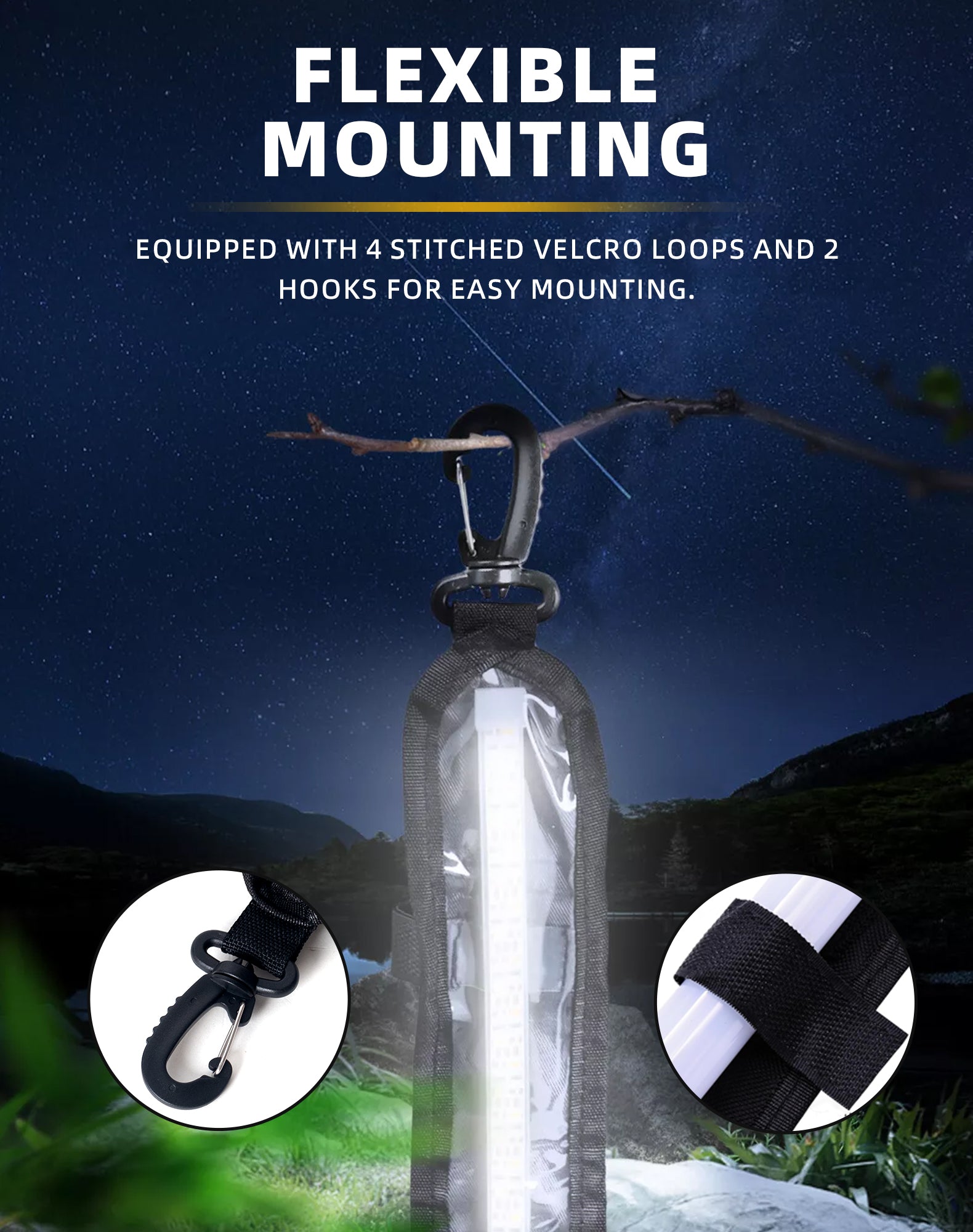 - Multiple Mounting Options】Featuring 4 stitched-in Velcro loops and 2 hooks, our 4FT LED Strip Light can be effortlessly mounted on awning arms, roof racks, or any other accessible location. Whether on a tree branch or inside your rooftop tent, this light is designed for easy and secure placement.