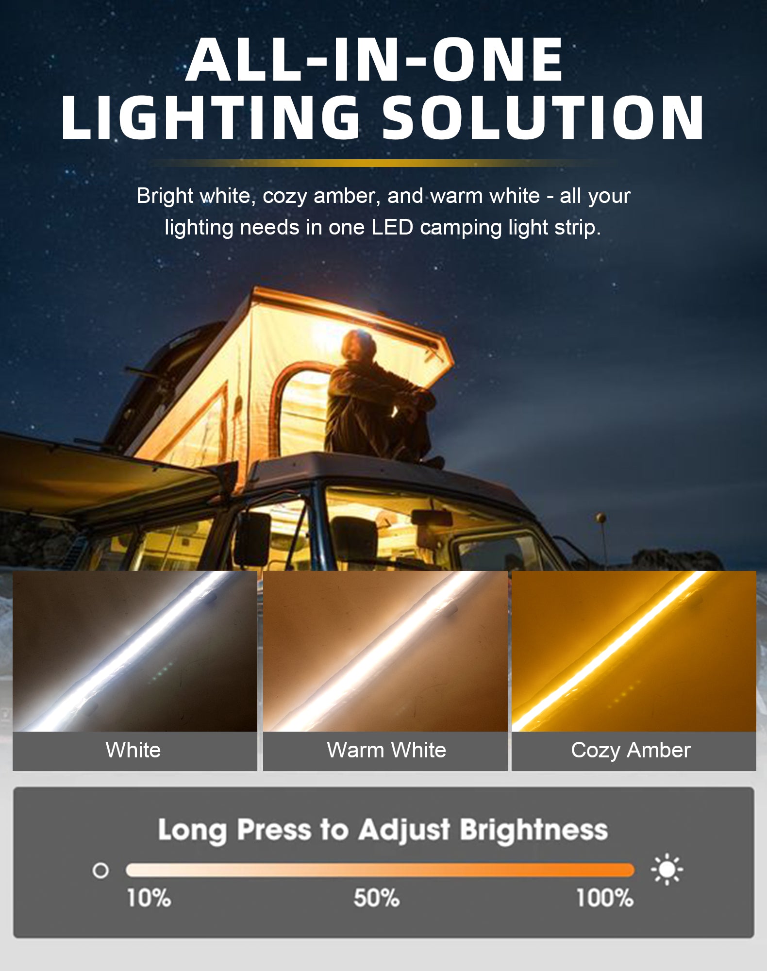 4FT 12V Led Light Strip Waterproof IP67, Dimmable Camping Awning Lights with 140 SMD 2835 LED Chips, Multi-Functional Use for RV, Car Tent, Camping, White/Warm White/Amber