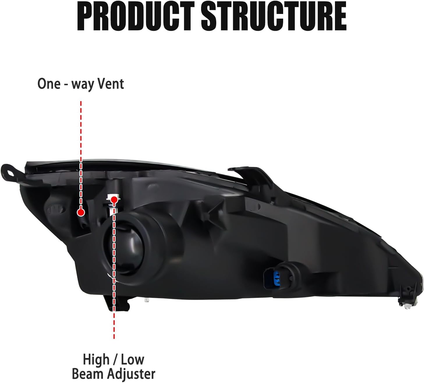 - 【VEHICLE COMPATIBILITY】Headlights assembly compatible with OE Type 2000 2001 2002 2003 2004 Ford Focus.High/Low Beam:H13 Bulb.No bulbs included