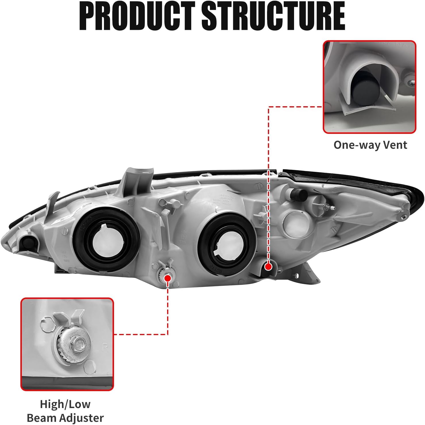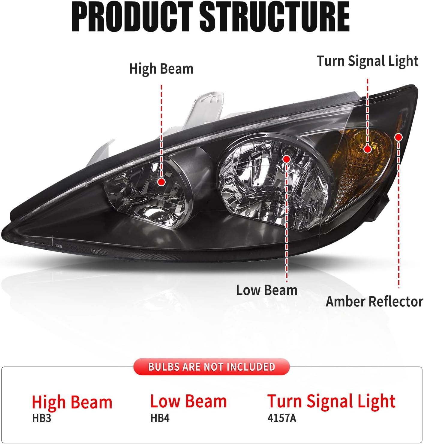- 【Package Includes】1 Pair of Headlight for 2002-2004 Toyota Camry driver side and passenger side.No bulbs included.