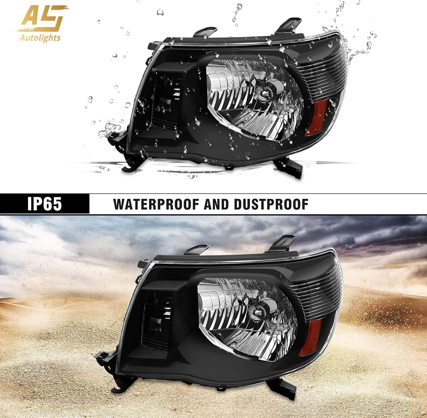 - 【Direct OEM Fitment】Headlight Assembly Replacement for 2005-2011 Toyota Tacoma Headlights.High/Low beam:H4,Turn signal beam:4157A(Bulbs not included)