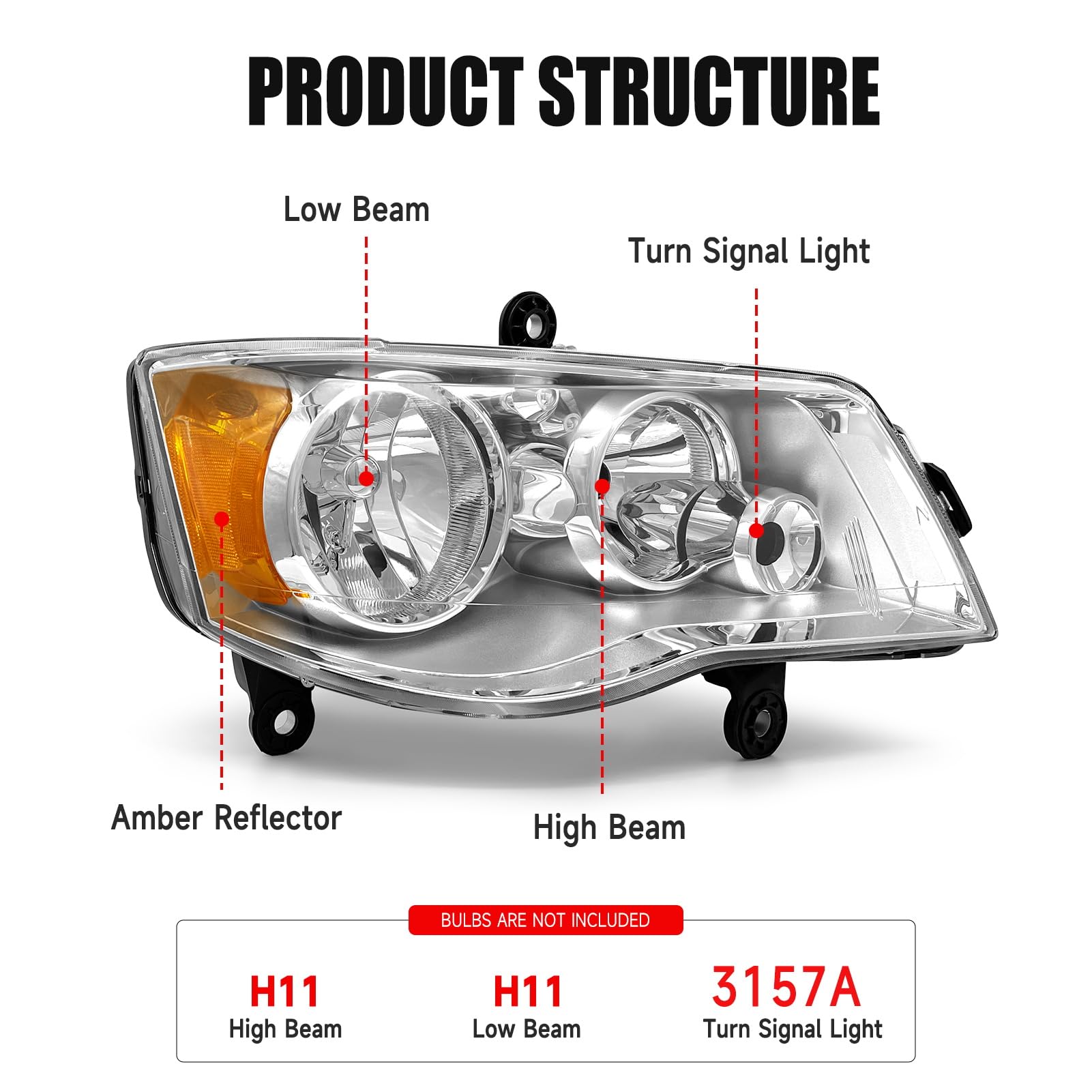 - 【100% Compatible With】Perfect fit for OE Type 2011 2012 2013 2014 2015 2016 2017 2018 Dodge Grand Caravan Models Only, 2008 2009 2010 2011 2012 2013 2014 2015 2016 Chrysler Town & Country Models Only, (Not compatible with Factory Xenon HID Projector headlight models), (Do not fit 2009-2010 models w/ automatic dimming headlights).High/Low Beam:HB5 Bulb