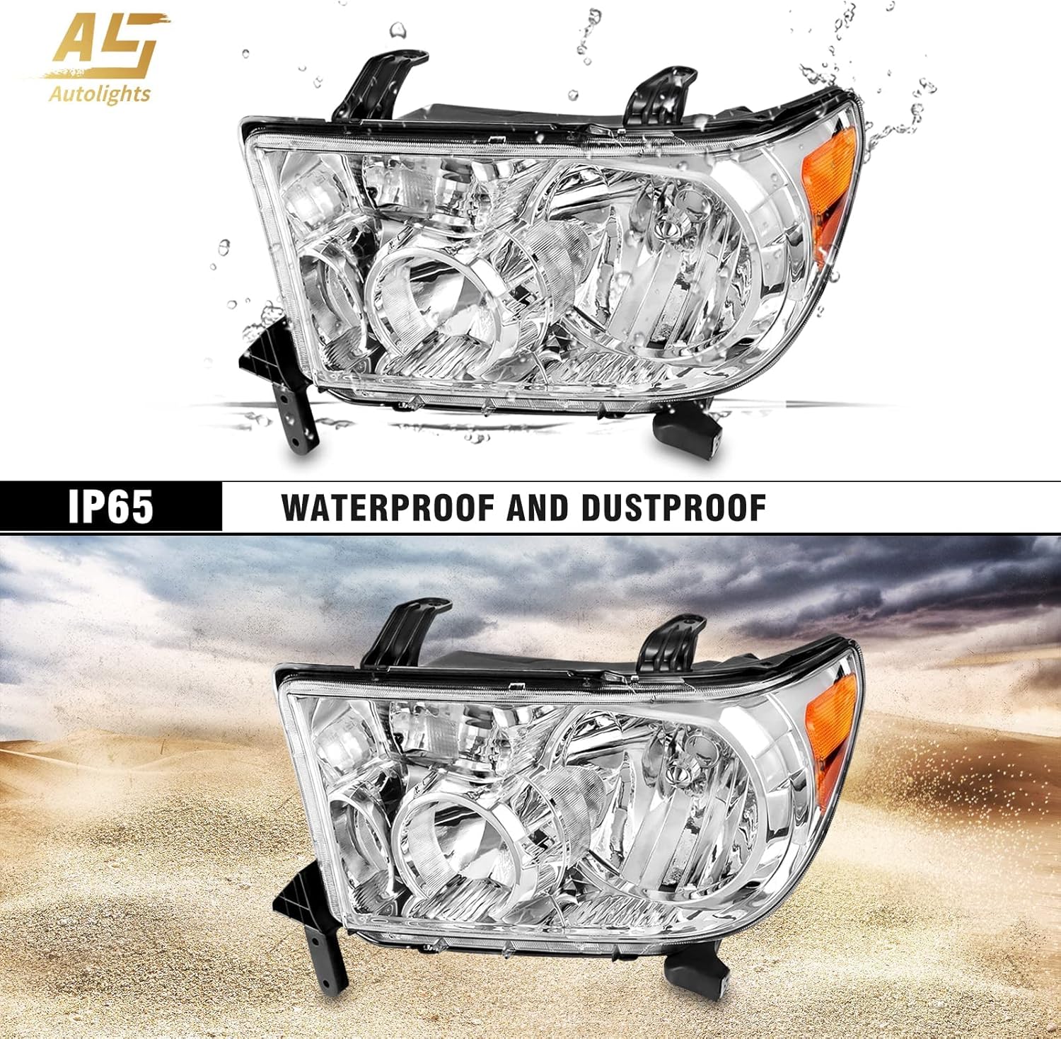 - 【Direct OEM Fitment】Headlight Assembly Replacement for 2007-2013 Toyota Tundra /2008 2009 2010 2011 2012 2013 2014 2015 2016 2017 Toyota Sequoia Headlights.Low Beam:H11,High Beam:9005,Turn signal beam:4157A(Bulbs not included)Not Suitable for Vehicle with Electric Headlamp Adjustment Function