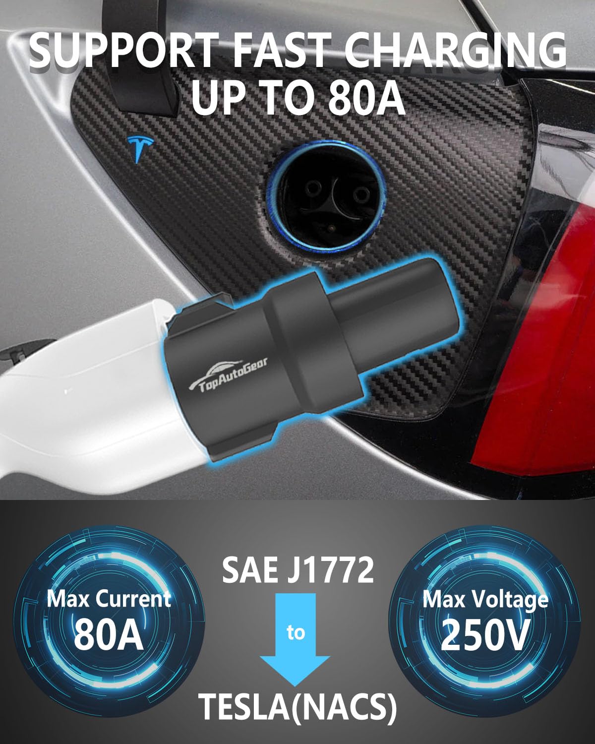 【High-Speed Charging】:Supports up to 80A and 250V, allowing fast charging at compatible J1772 chargers. This adapter meets the power demands of your Tesla, helping you minimize downtime and maximize time on the road.