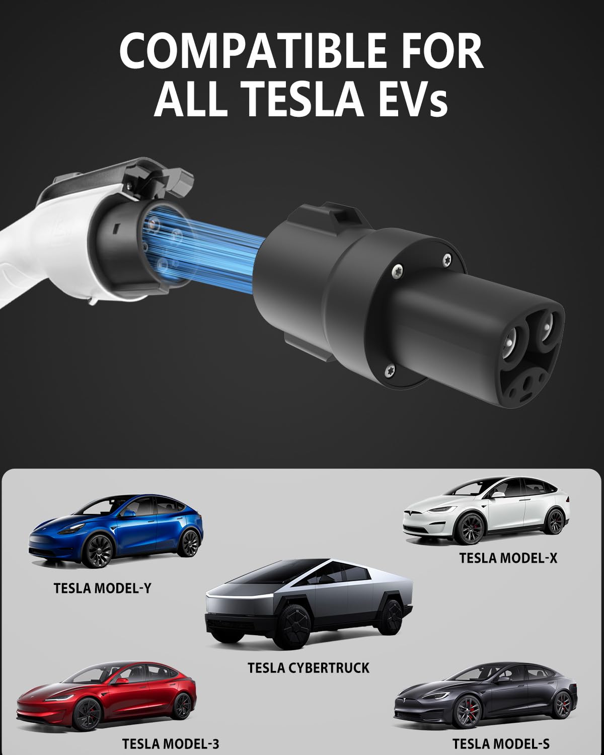 【Plug-and-Play Convenience】:No complicated setup—simply plug your Tesla into any J1772 charging station. The lightweight, portable design , making it easy to keep in your vehicle for quick access whenever needed.