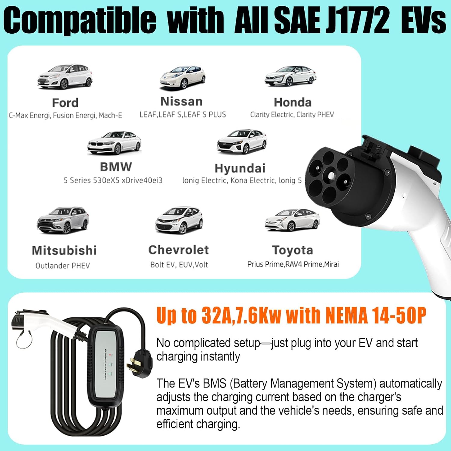 - 【Universal J1772 Compatibility】: Charge any J1772 electric car or plug-in hybrid from major brands like Nissan, Audi, BMW, Honda, and more. Note: Tesla and certain 2025+ models (Ford, GM, Rivian, Hyundai/Kia) require a separate Tesla adapter (not included). A versatile EV charger for nearly every driver.