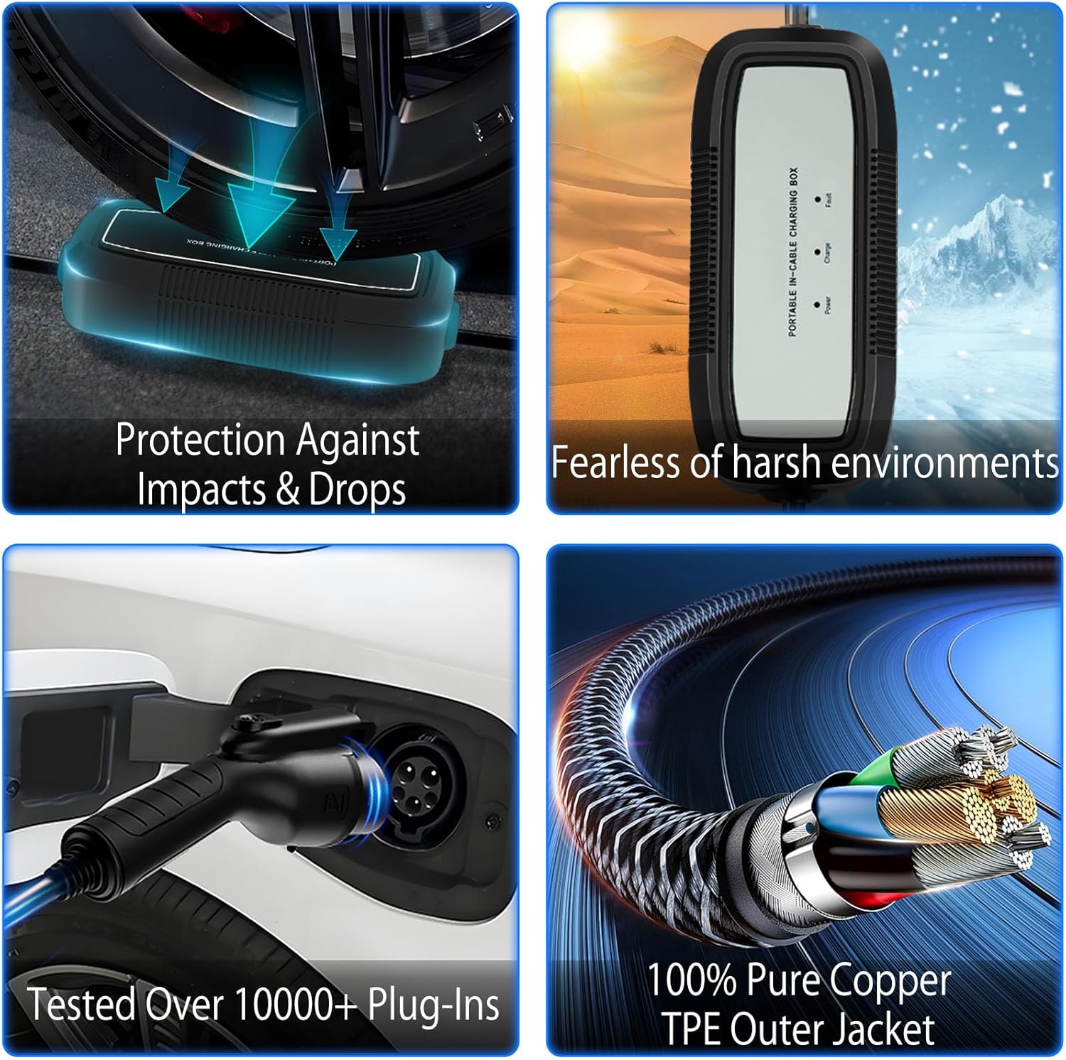 - 【Truly Plug-and-Play – No App or Setup Needed】: Start charging in seconds—no confusing apps or complex settings. Clear LED status indicators keep you informed throughout the electric car charge process, making this mobile charger as simple as it is reliable.