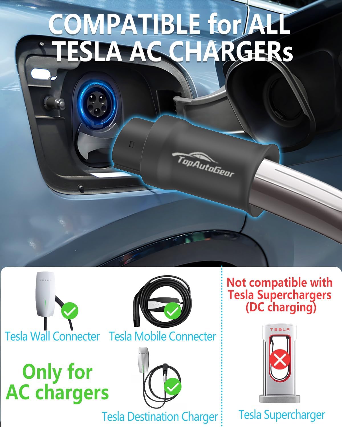 - 【Broad Compatibility】:Easily charge your J1772 electric vehicle using Tesla and NACS charging stations with this adapter, unlocking access to over 15,000 additional charging points. Compatible with Tesla High Powered Wall Connectors, Destination Chargers, and Mobile Connectors.
