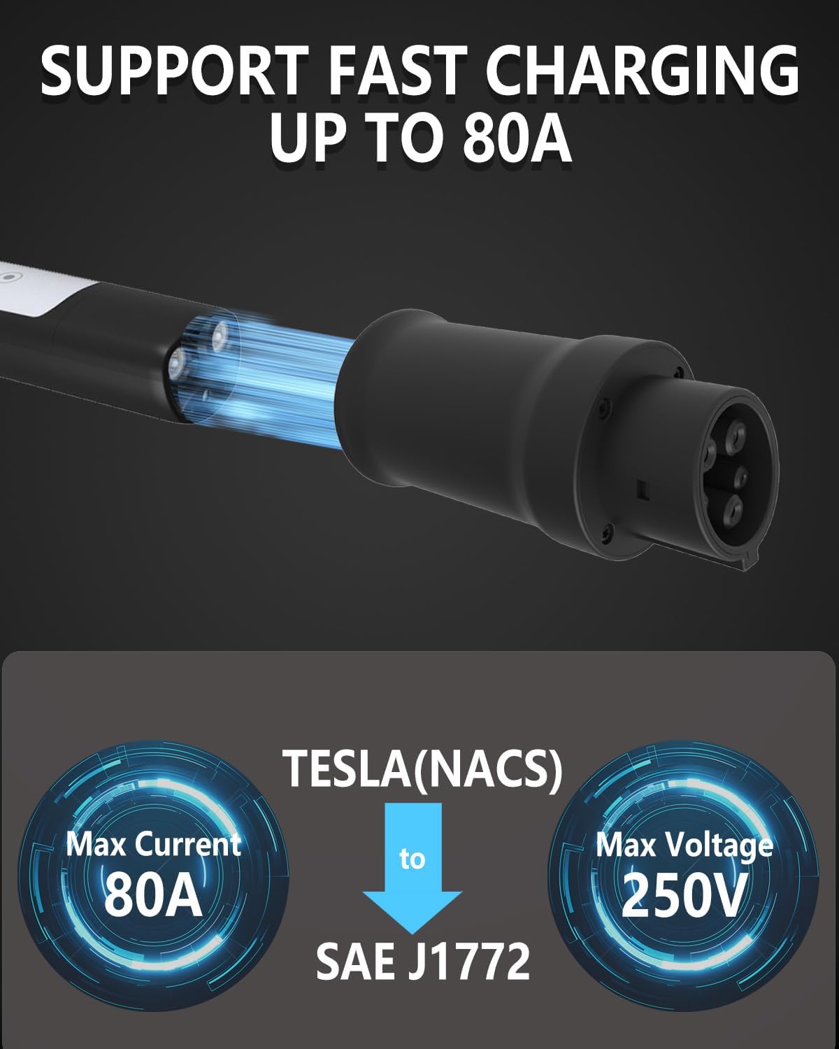 - 【Fast and Efficient Charging】:Supports up to 80A and 250V, compatible with Tesla chargers rated at 60A, 48A, 40A, 32A, 24A, and 16A. Experience fast and efficient charging, saving you valuable time on your journey.