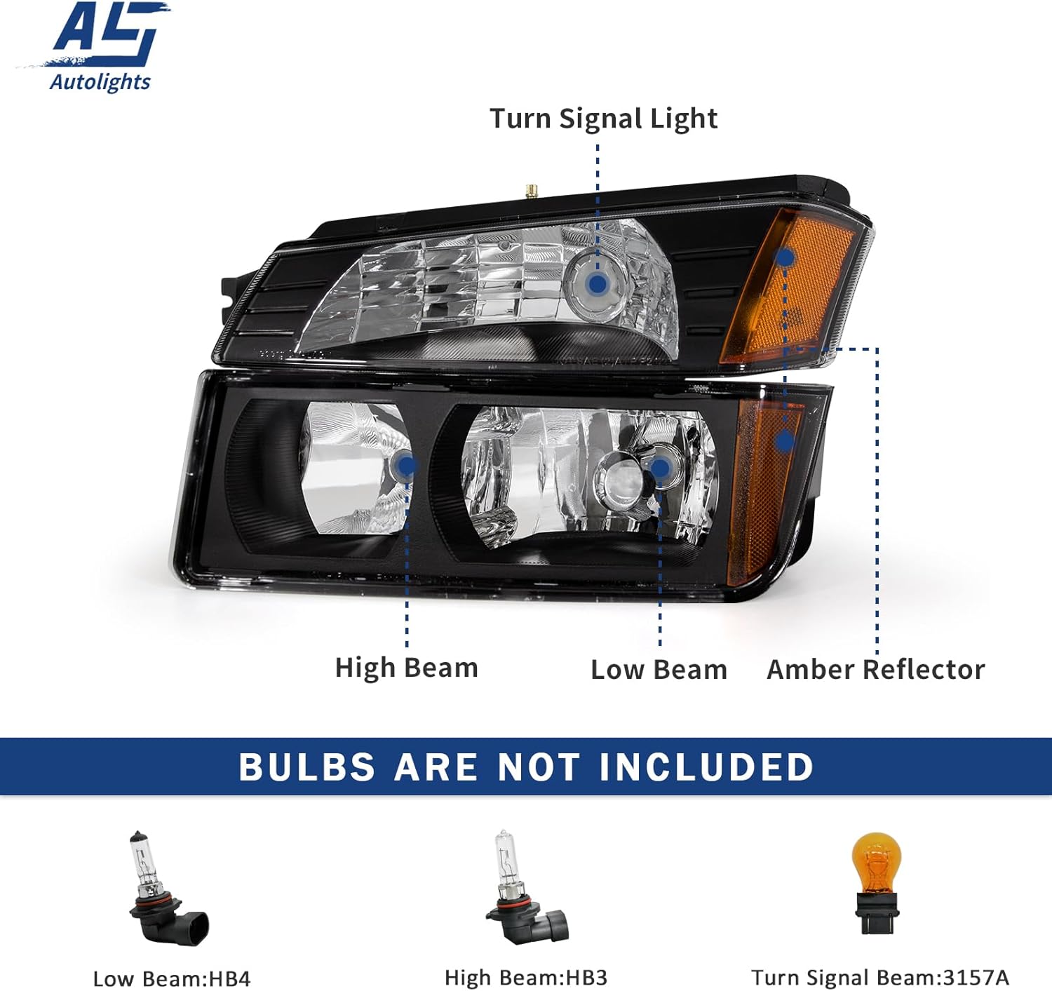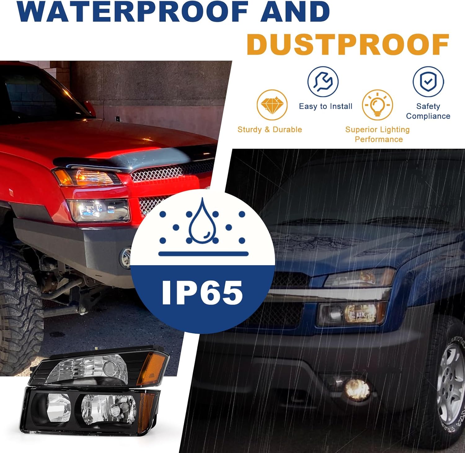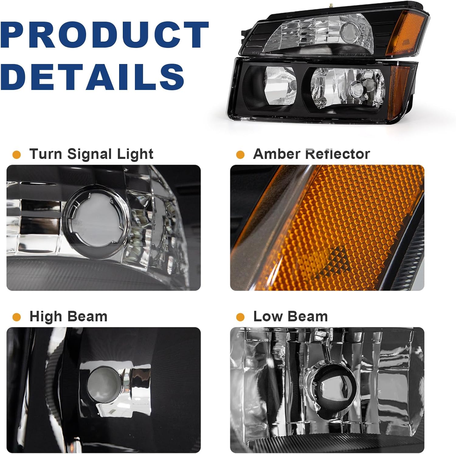 - 【Direct OEM Fitment】Headlight Assembly Replacement for 2002 2003 2004 2005 2006 Chevy Avalanche 1500 2500 Headlights.(Bulbs not included)